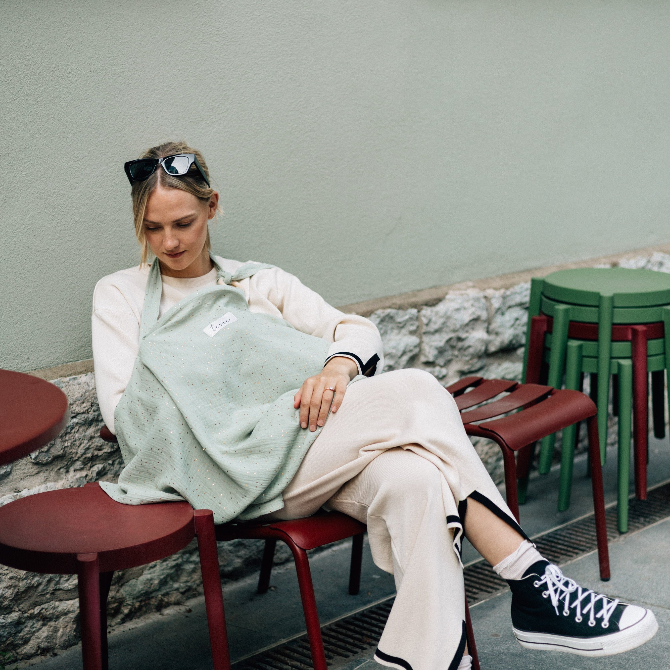 TISU breastfeeding cover has an arched support which allows for unobstructed eye contact with the baby while breastfeeding.