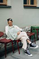 - In kaltem Wasser/Schonwaschgang waschen und zum Trocknen aufhängen.