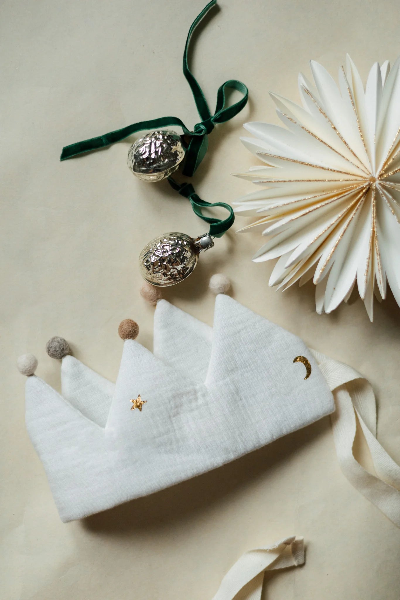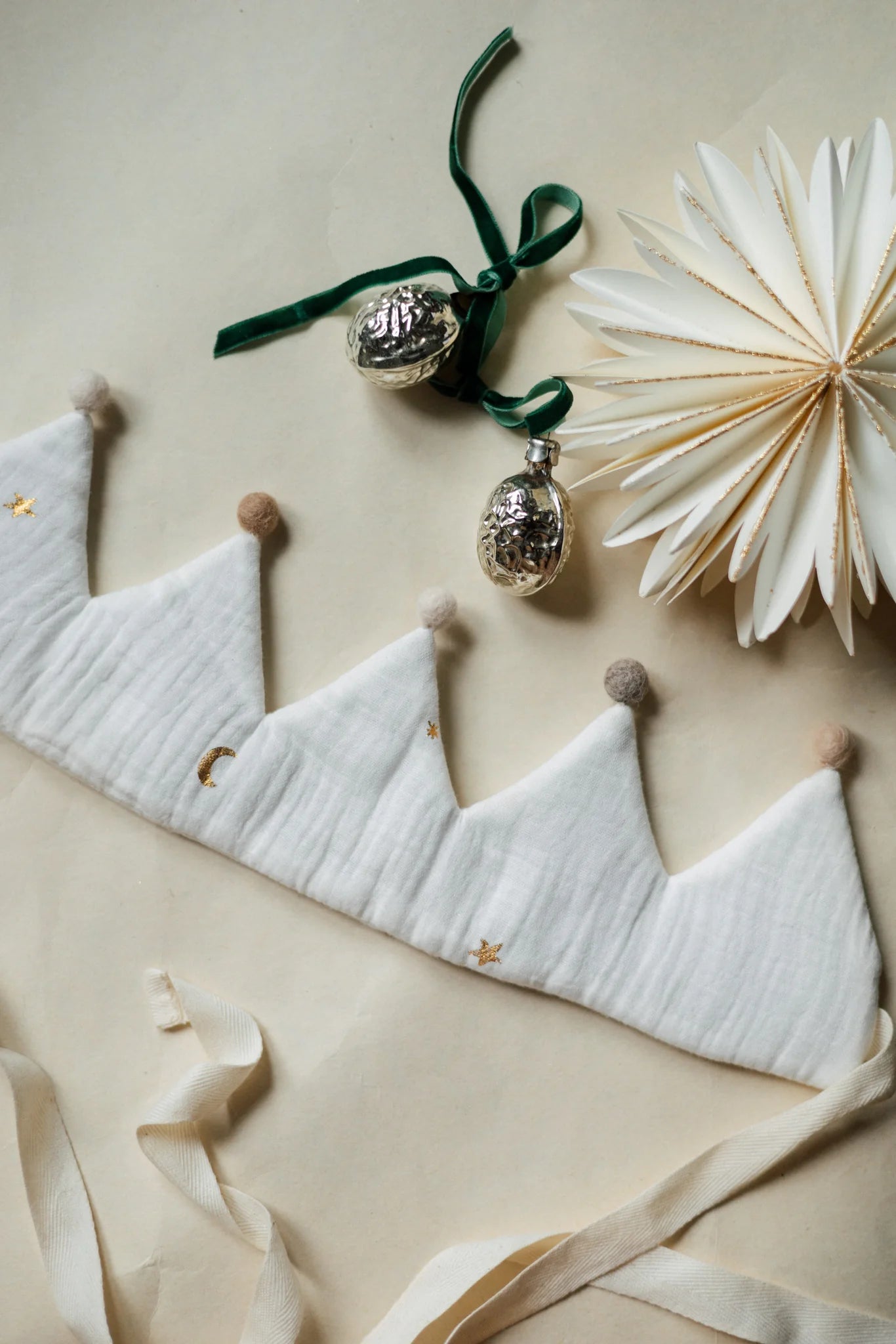 TISU children's crowns are available in three different colours: white, taupe and rouge, all with beautiful gold moon and stars. 👑