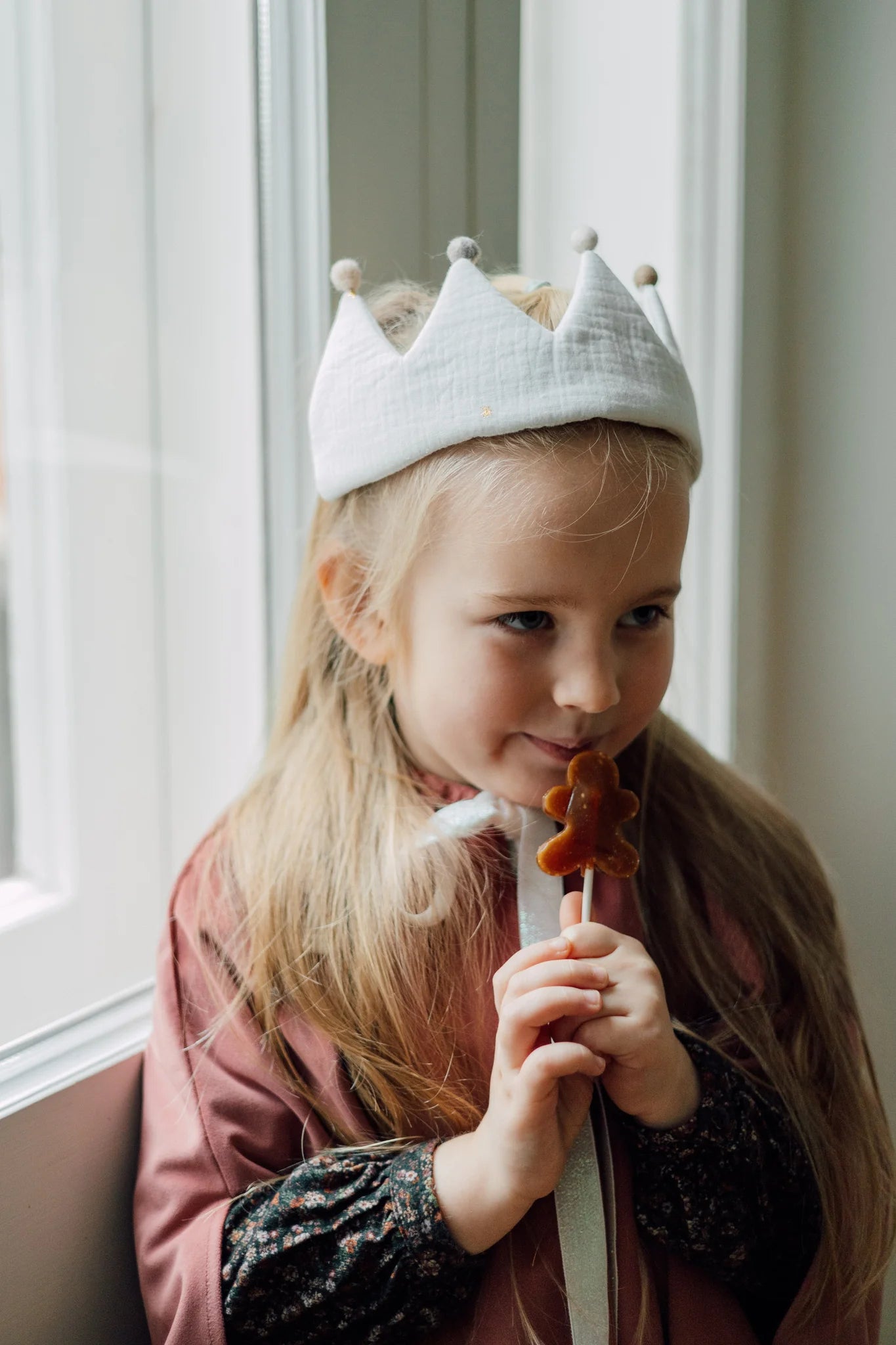 TISU's beautiful and soft muslin fabric crown is perfect for a princess or a prince, for a party and everyday celebration.