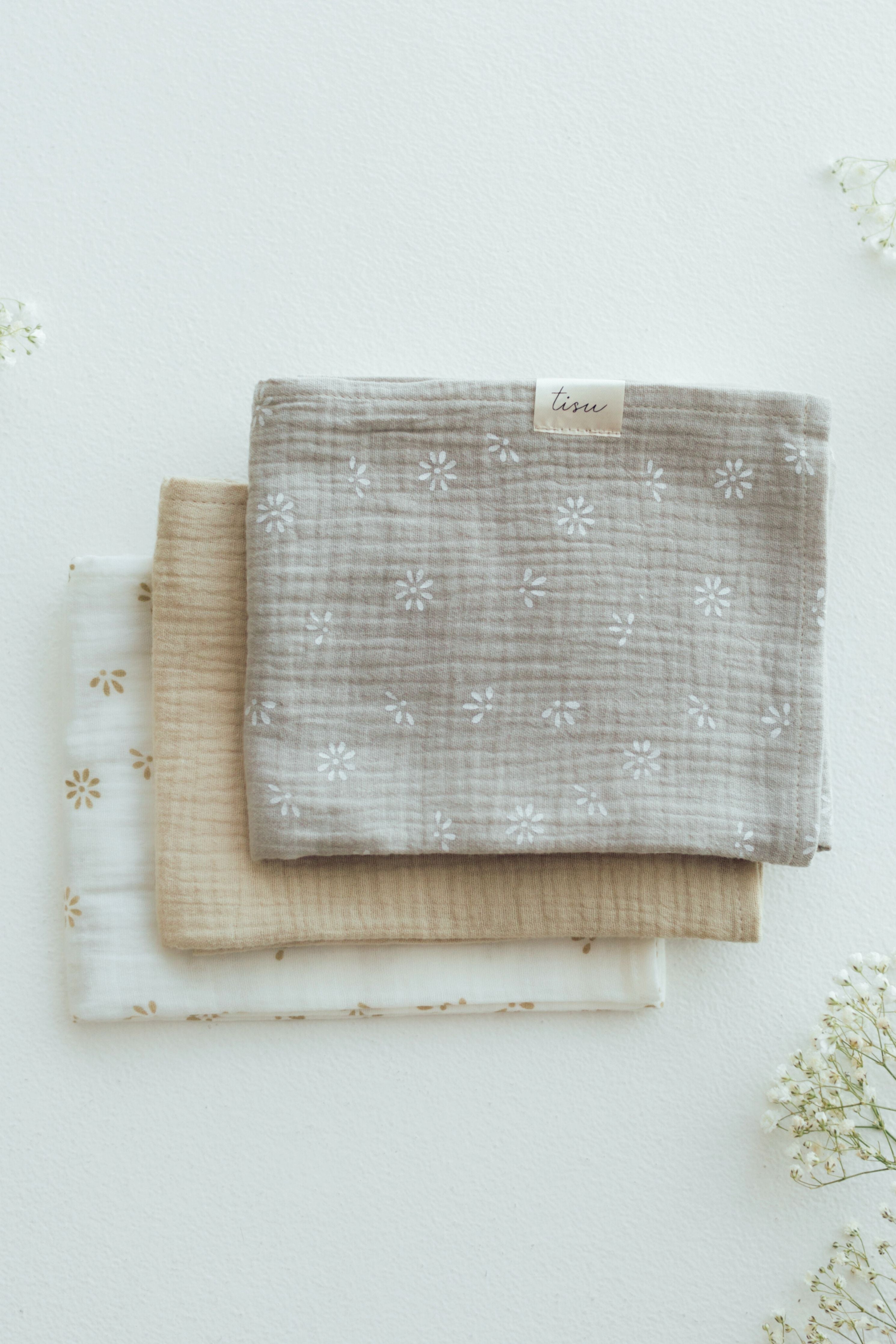 TISU muslin set: Beige Daisy + Oat Beige + Cream Daisy