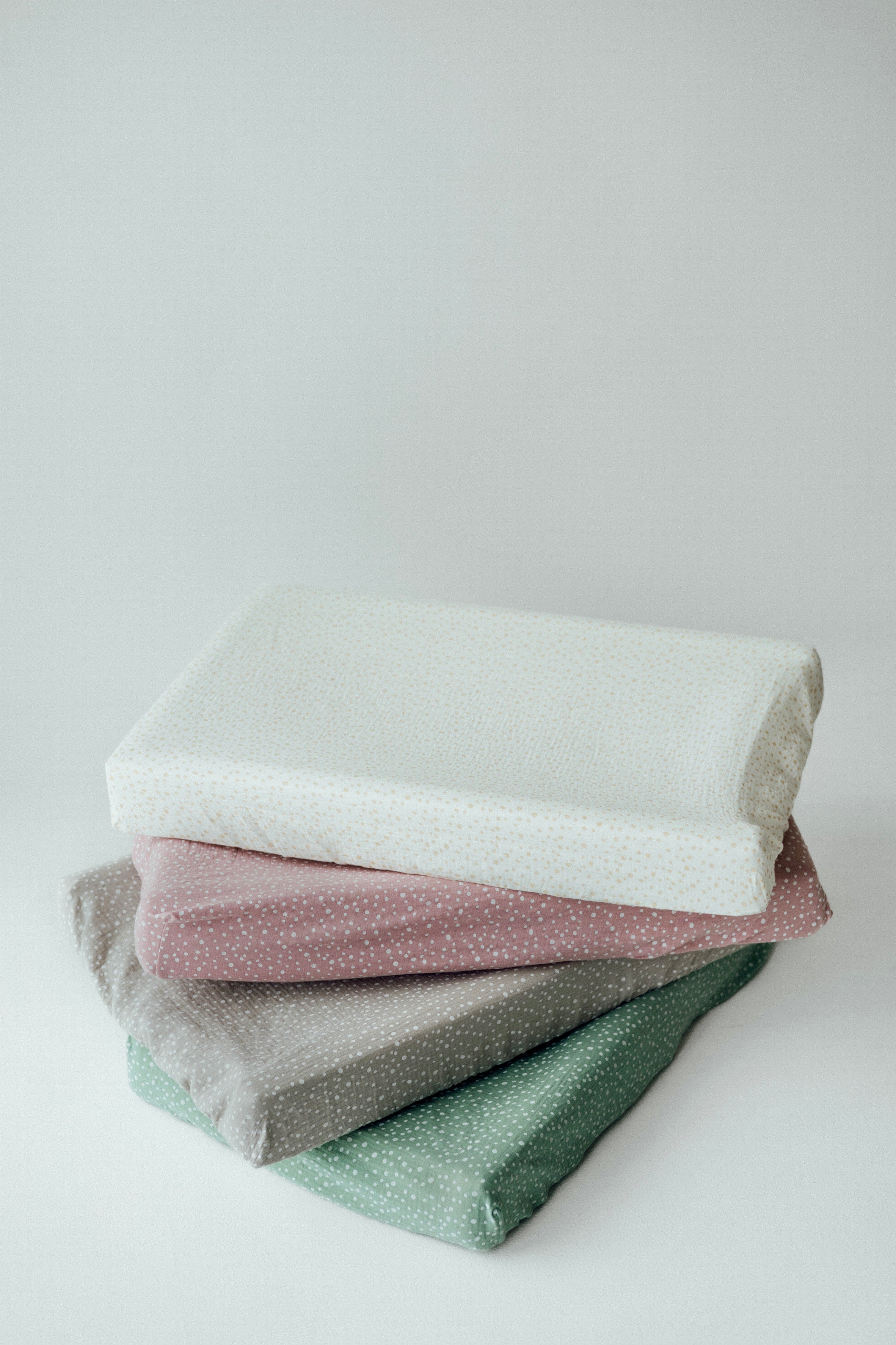 A replaceable changing pad cover is now available. It is made of soft and breathable muslin. It has convenient rubber bands, so it's easy to put on the changing pad and it stays nicely in place during treatments.