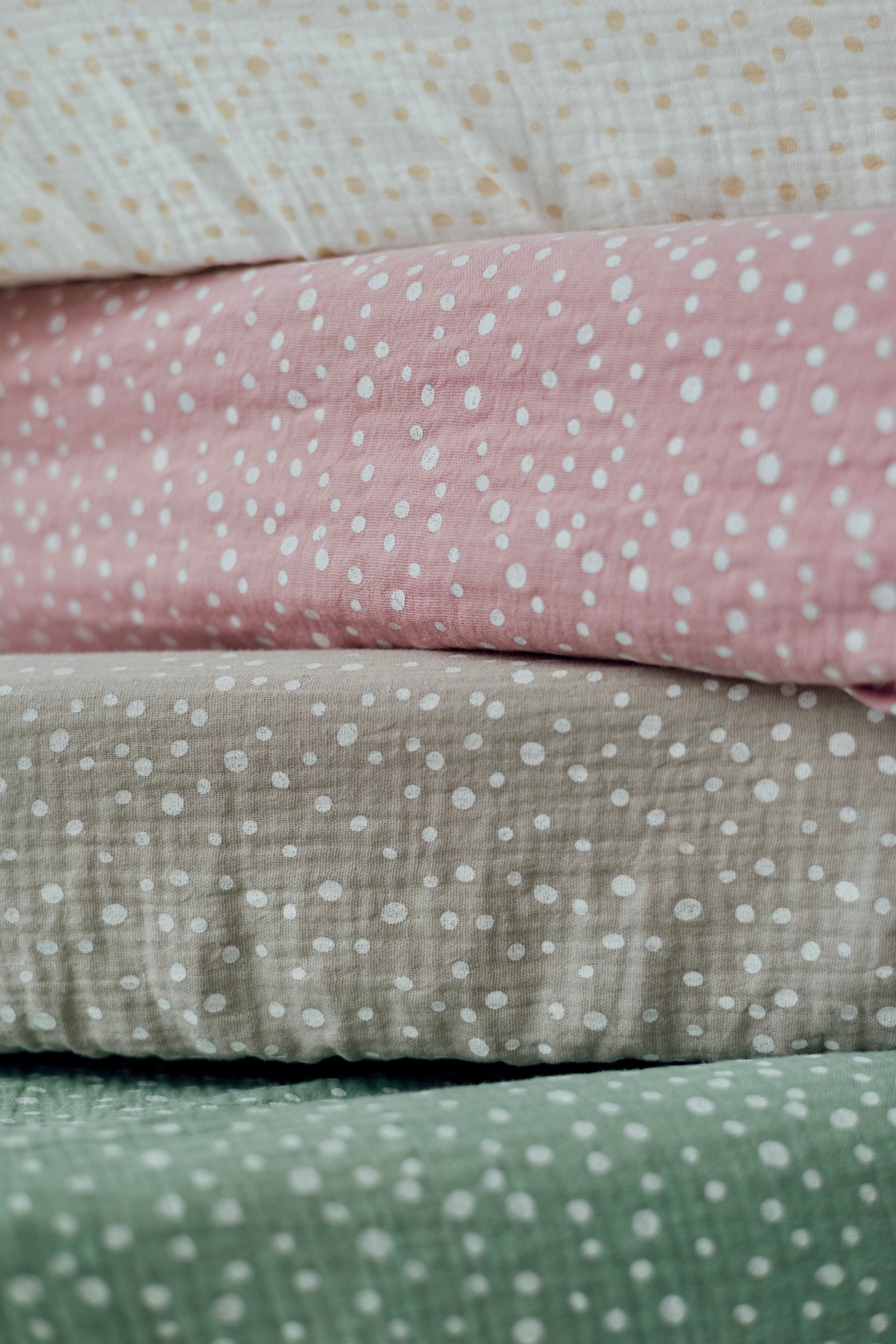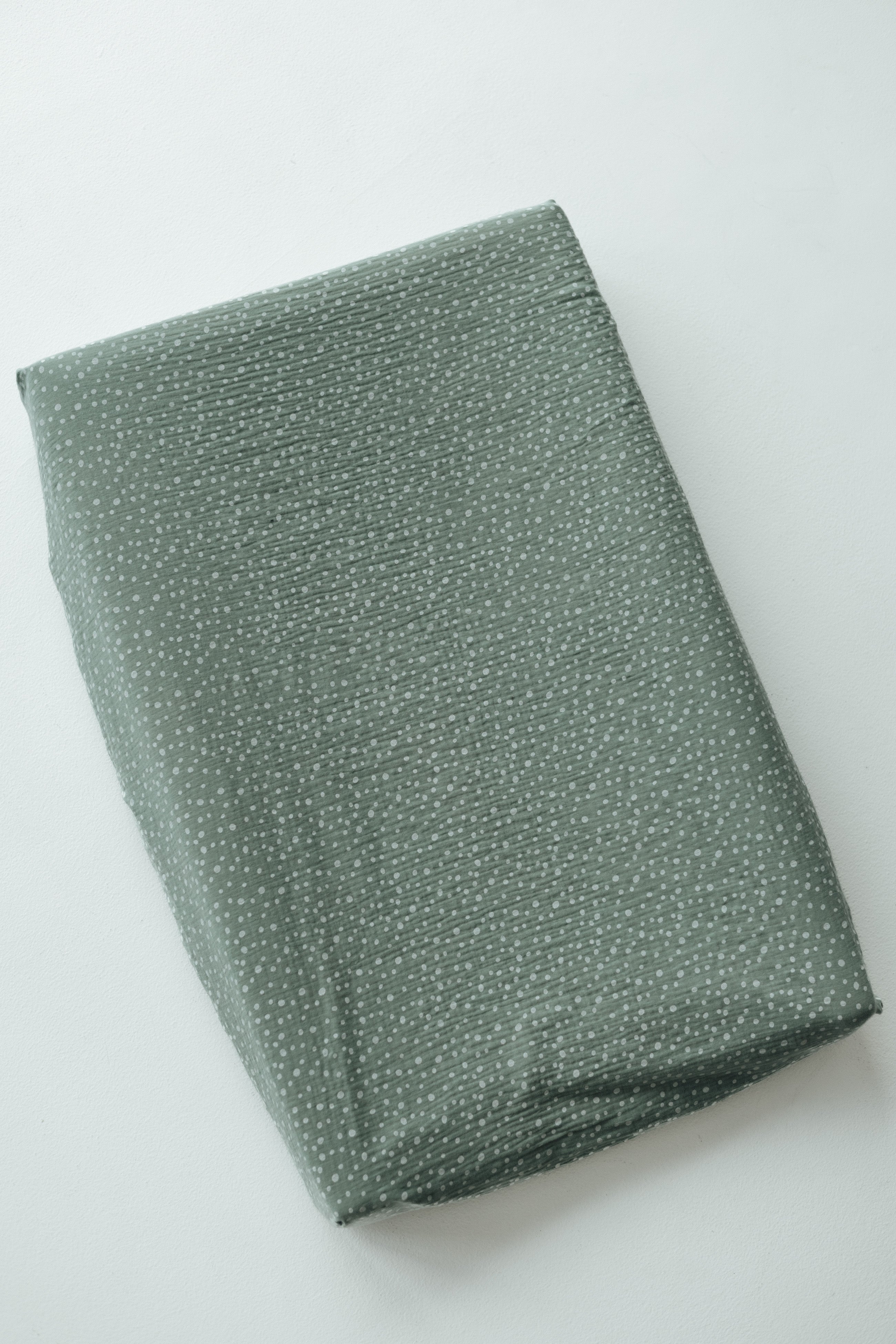A replaceable changing pad cover is now available. It is made of soft and breathable muslin. It has convenient rubber bands, so it's easy to put on the changing pad and it stays nicely in place during treatments.