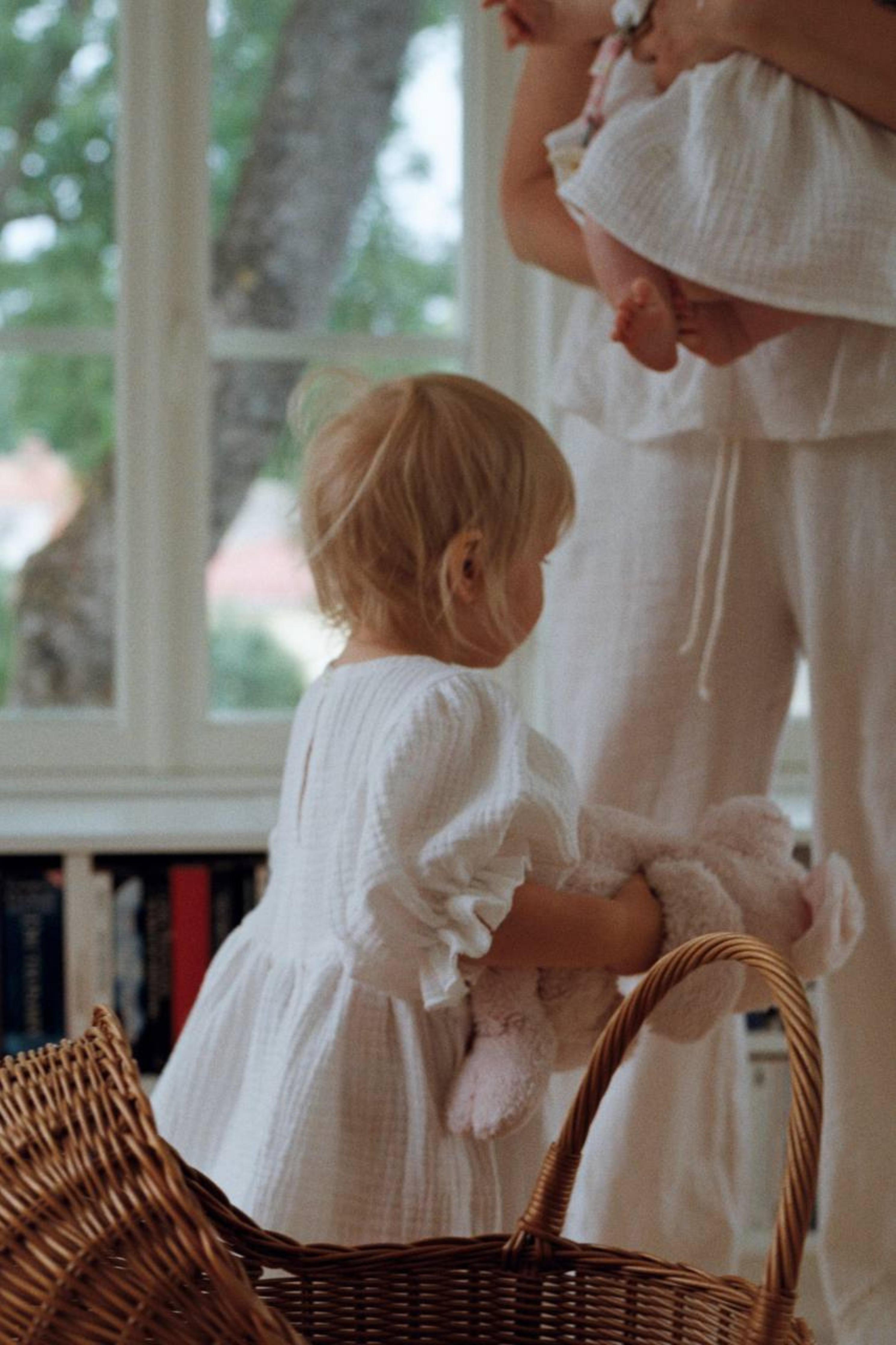 The TISU mini-me summer dress, is a cute match for the adult TISU summer dress, it's made from the same soft, breathable, high-quality muslin fabric. Perfect for family photos, parties, or everyday.