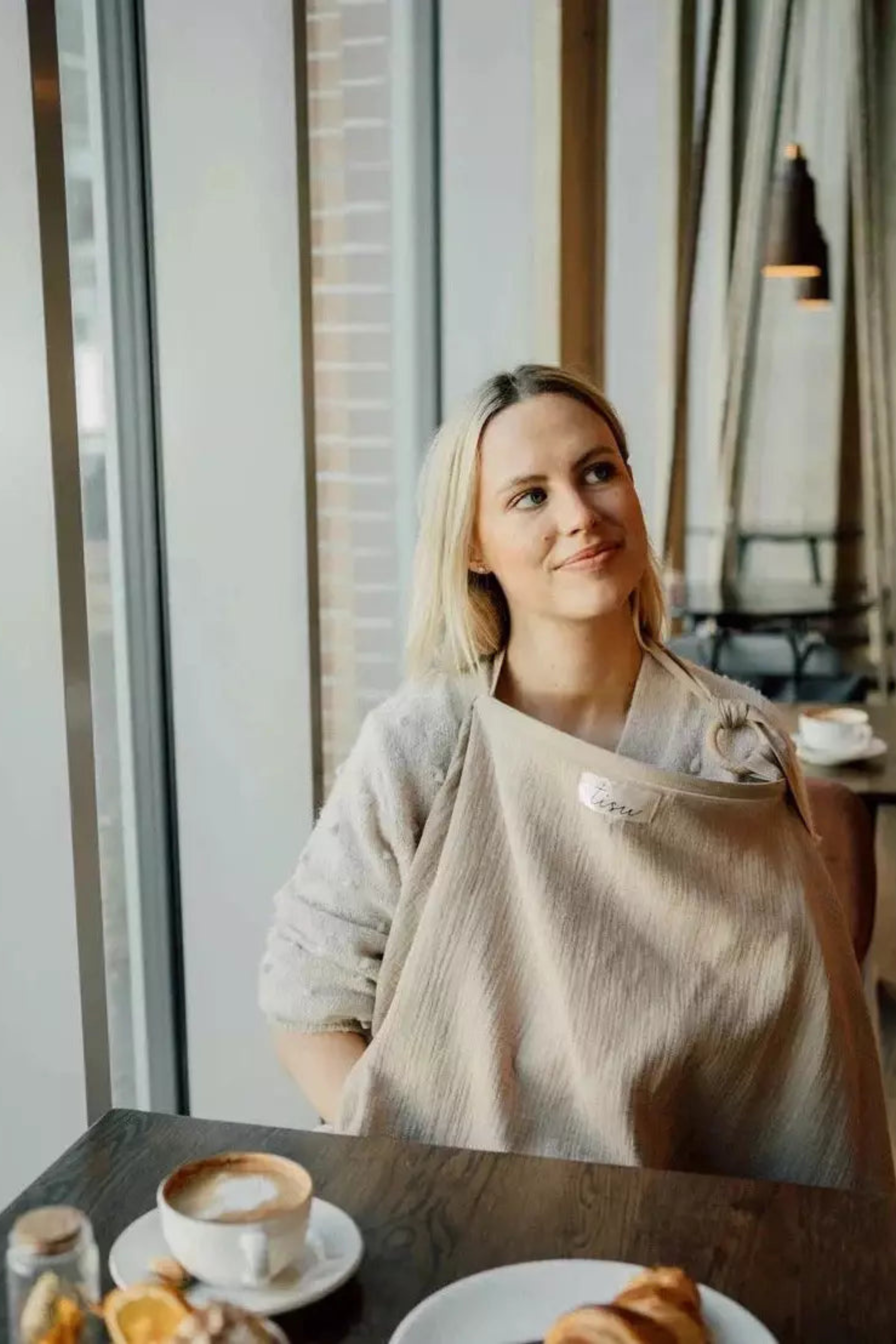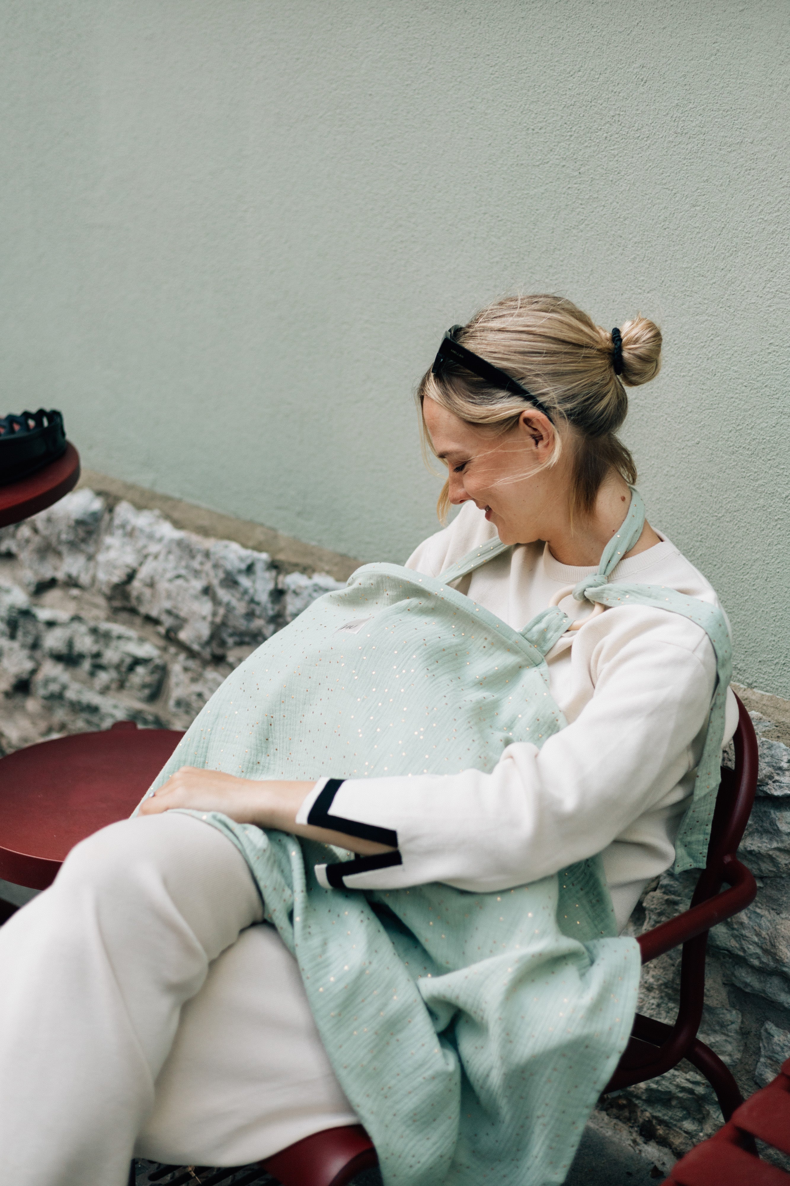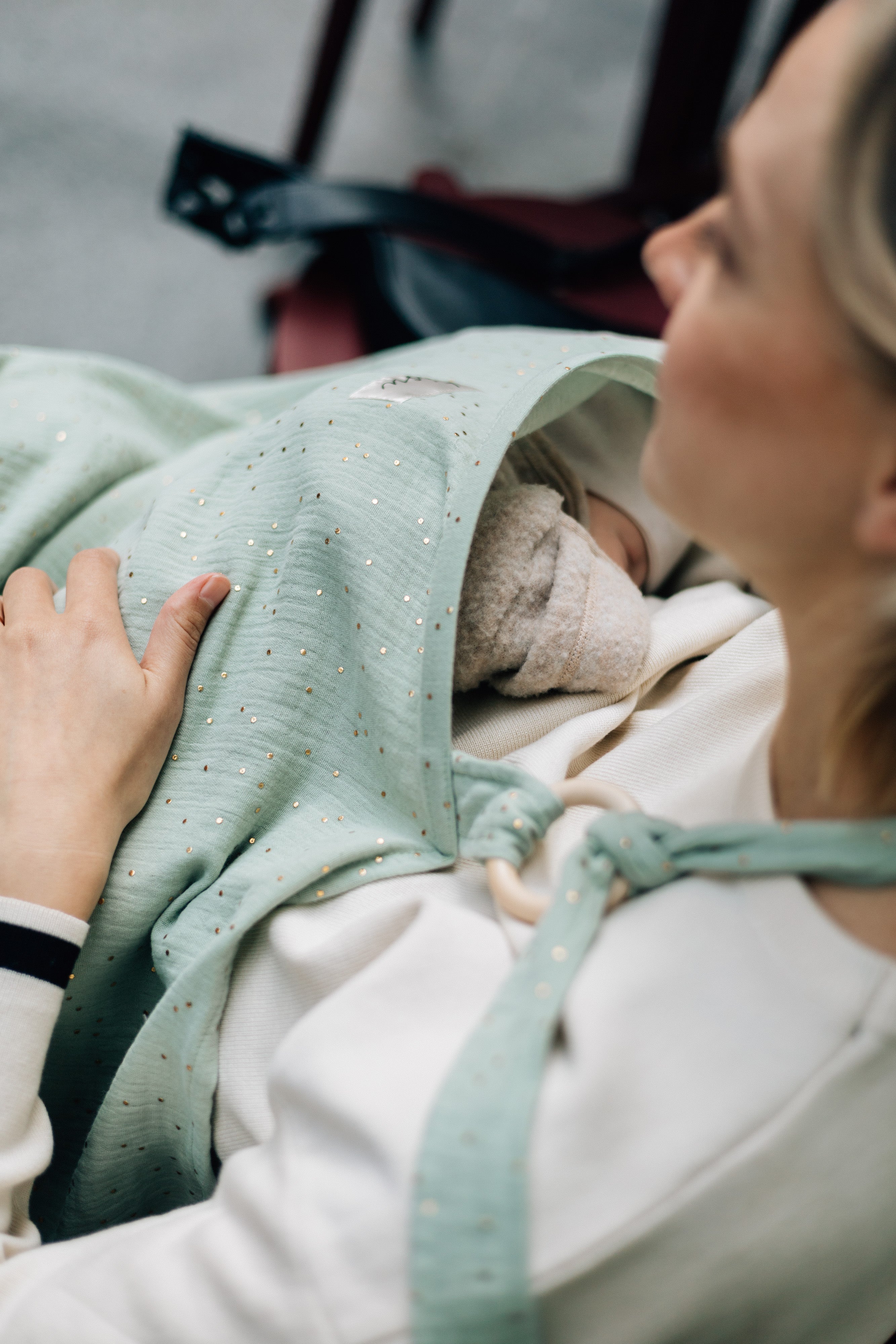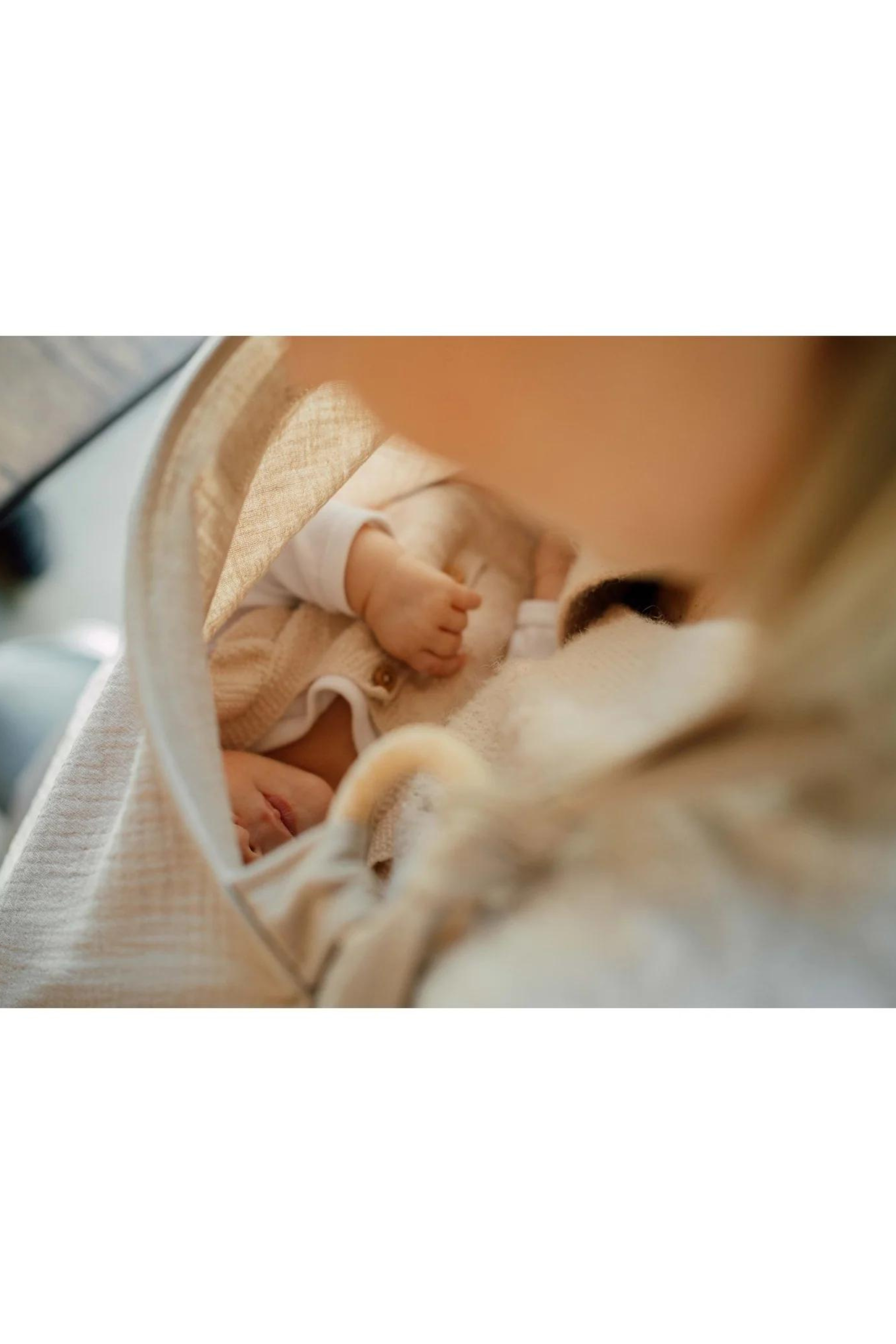TISU breastfeeding cover has an arched support which allows for unobstructed eye contact with the baby while breastfeeding.