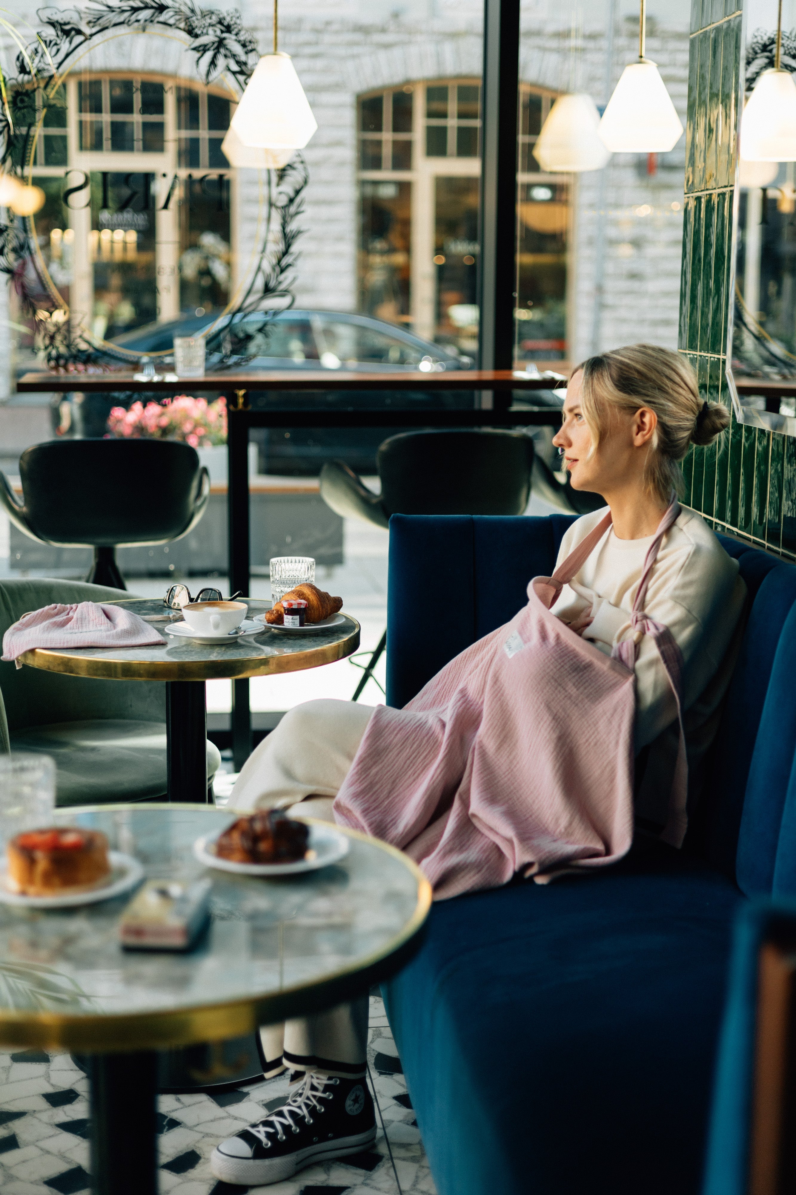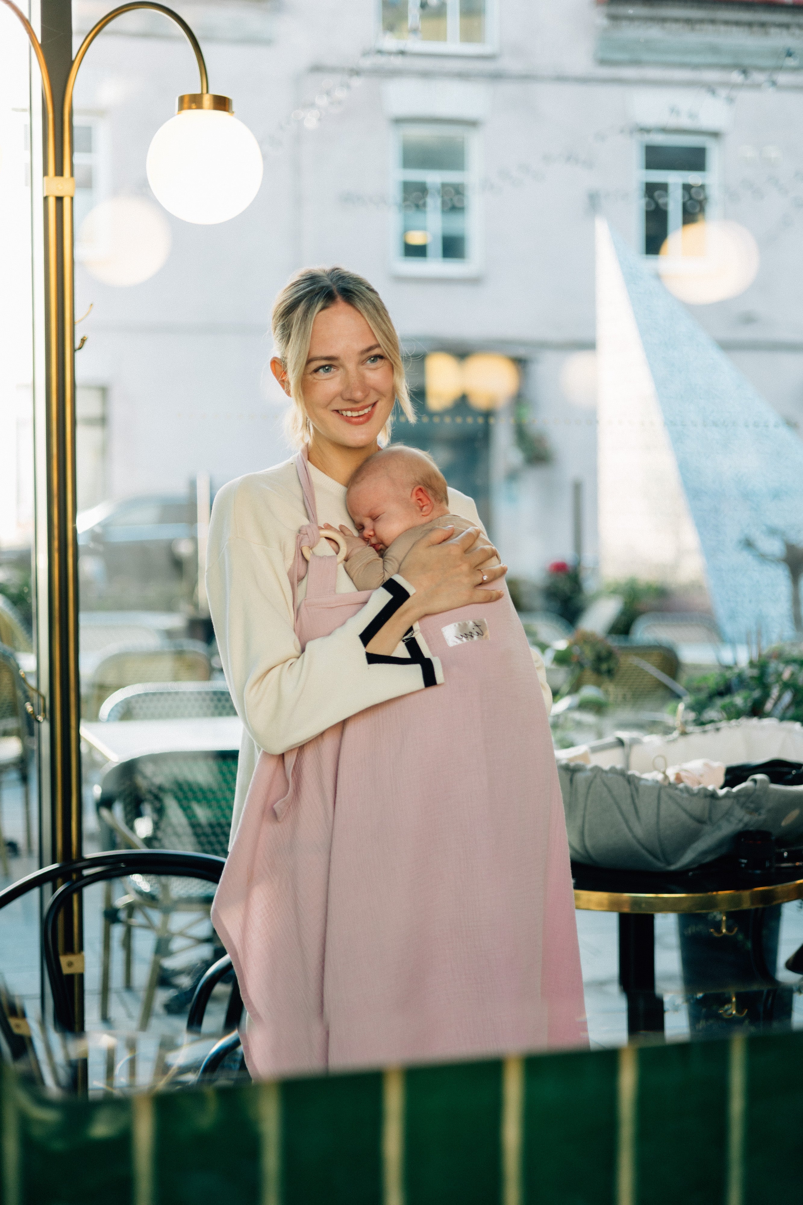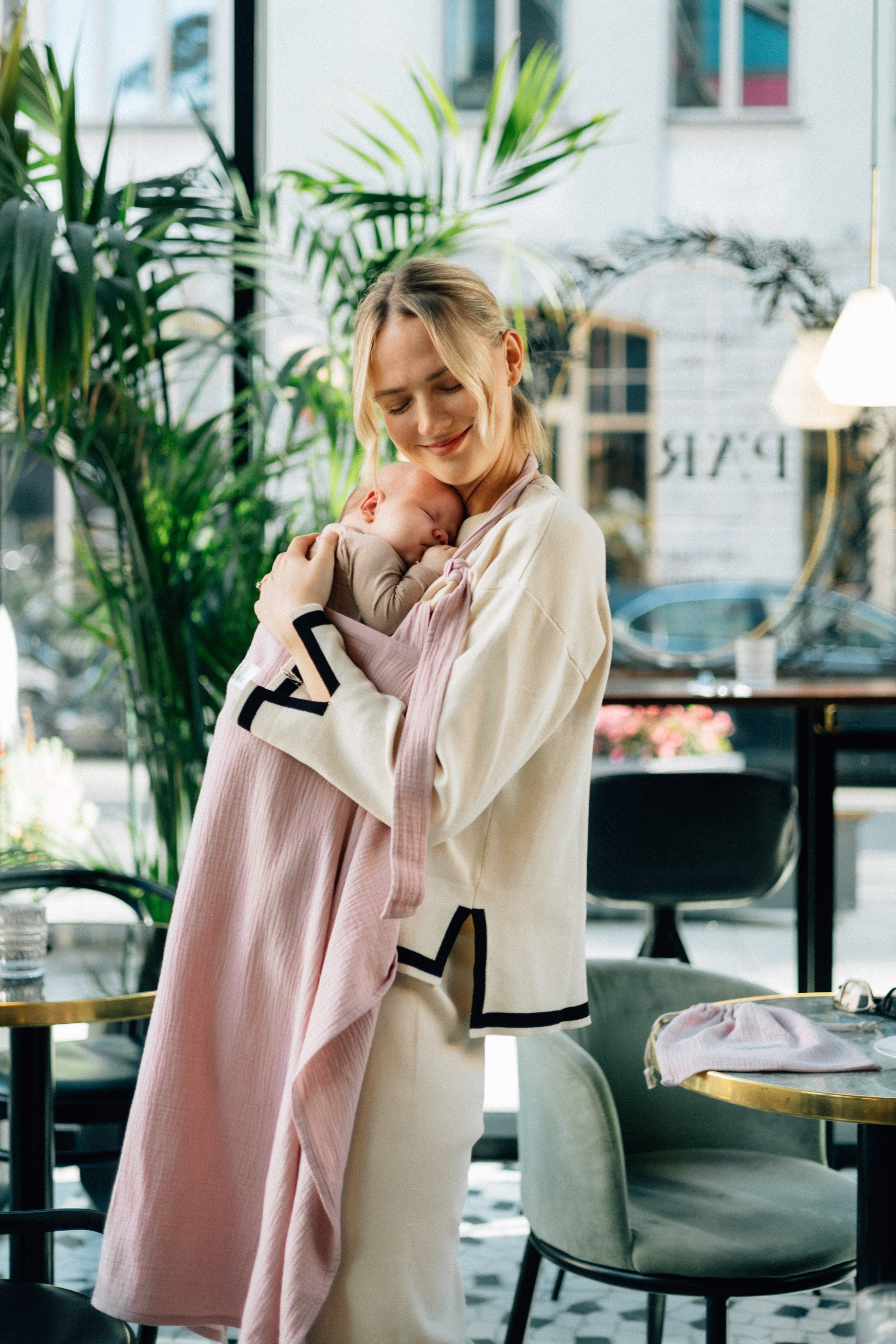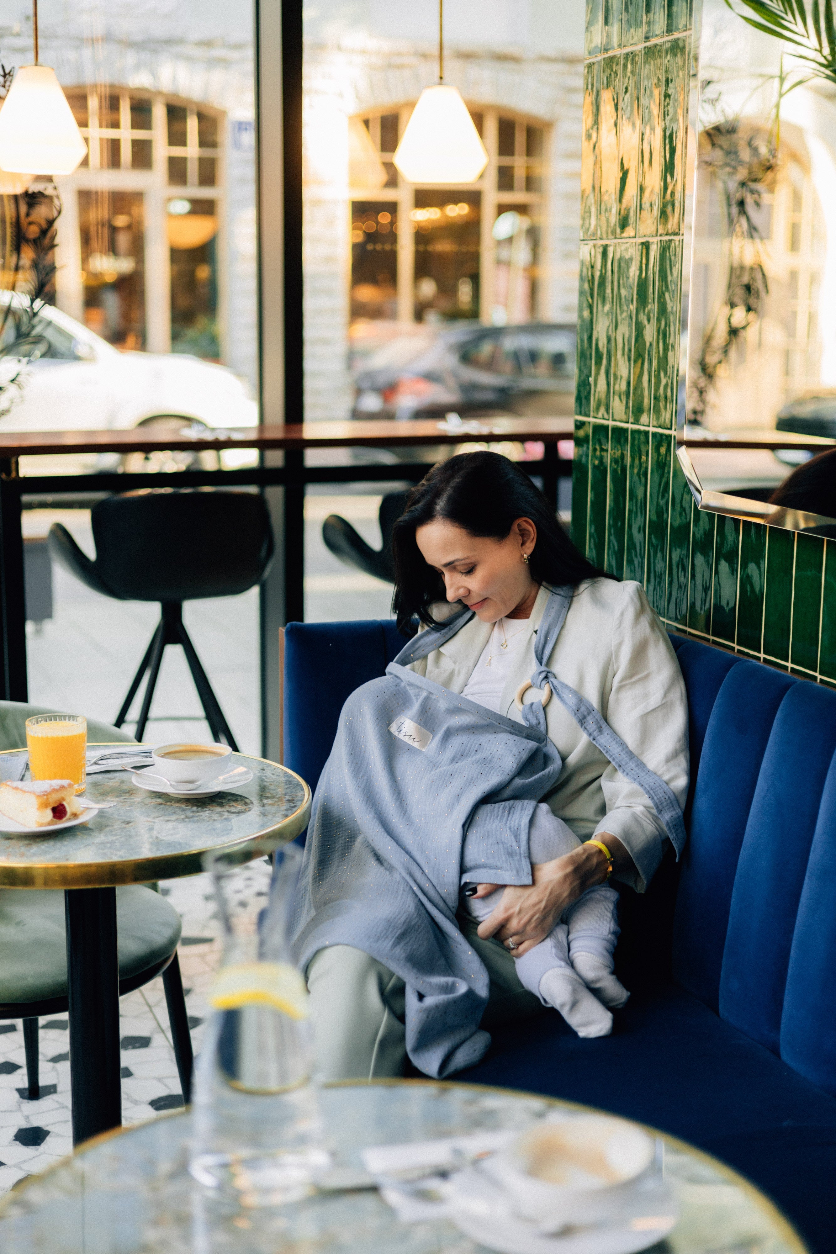 TISU breastfeeding cover has an arched support which allows for unobstructed eye contact with the baby while breastfeeding.