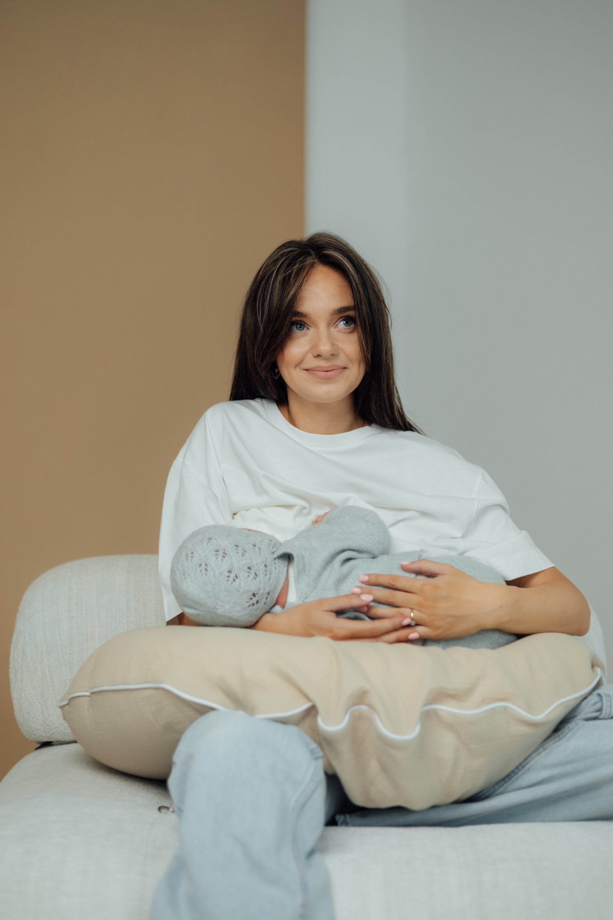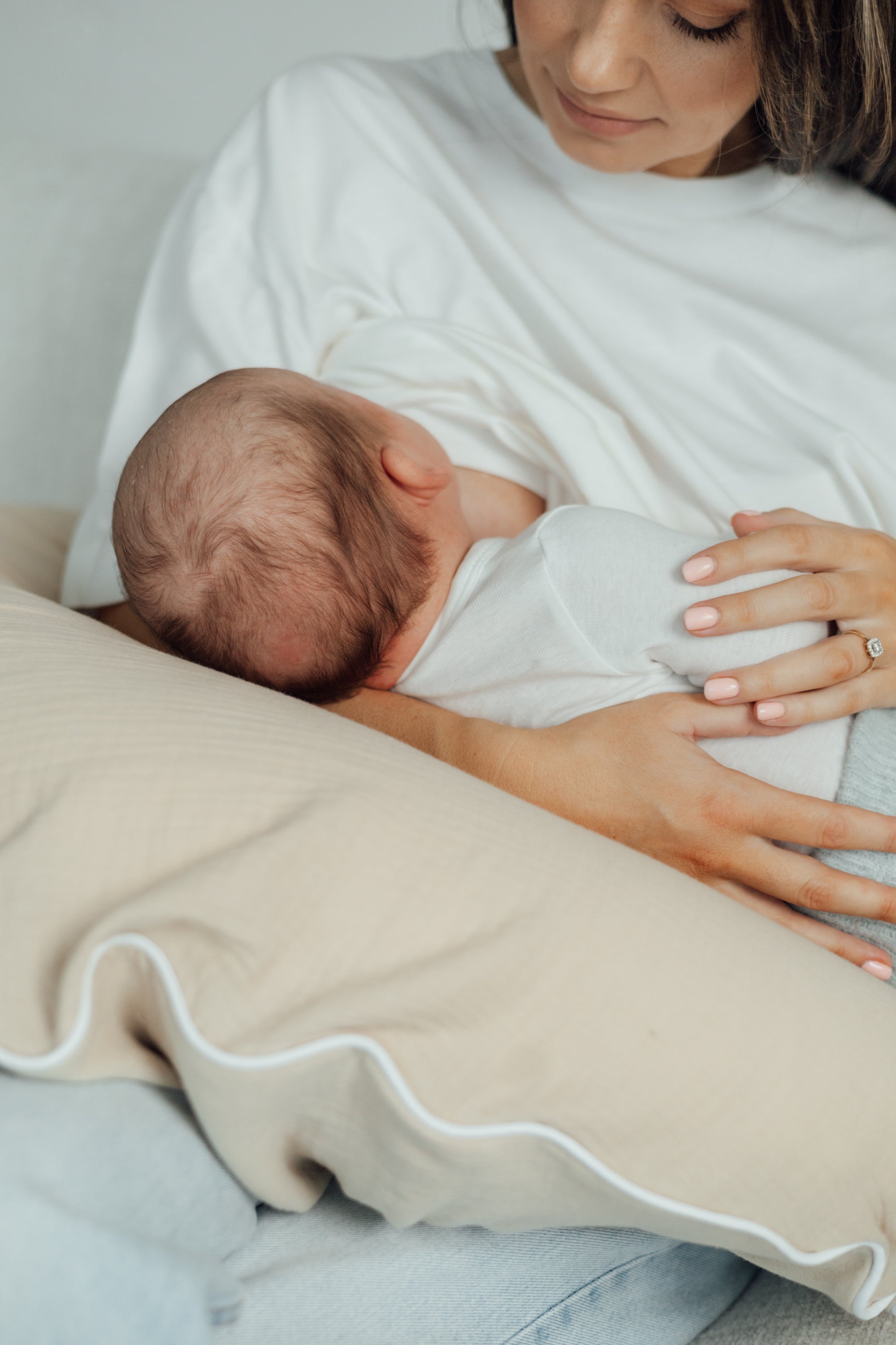 Many nursing pillows require constant repositioning during breastfeeding—they collapse and slide out of place. As a result, mothers remain tense throughout feeding, supporting the baby with their arms and back. This places unnecessary strain on the body and can intensify back and shoulder tension.